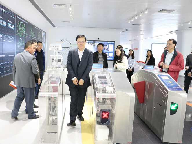 吴忠泽理事长在体验公司的人脸识别检票机