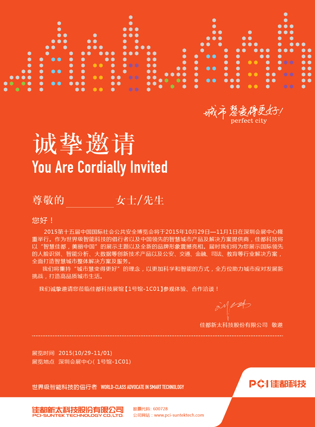 2015第十五届中国国际社会公共安全博览会将于2015年10月29日—11月1日在深圳会展中心隆重举行。作为世界级智能科技的倡行者以及智慧城市产品及解决方案提供商,ng28南宫科技将以“智慧佳都,美丽中国”的展示主题以及全新的品牌形象震撼亮相。届时我们将为您展示先进的人脸识别、智能分析、大数据等创新技术产品以及公安、交通、金融、司法、教育等行业解决方案,全面打造智慧城市整体解决方案及服务。